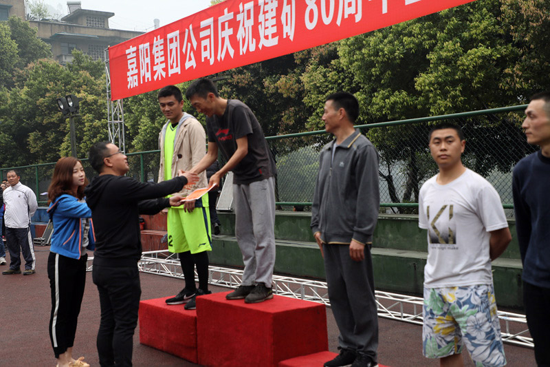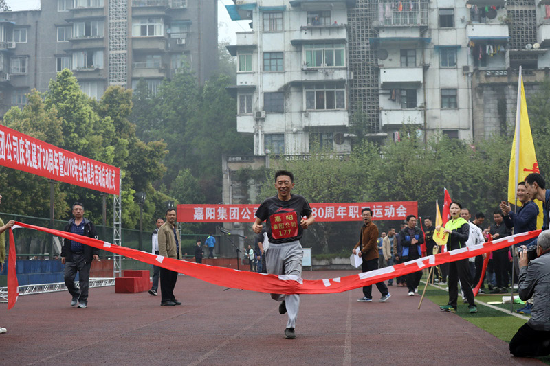 越野賽分男、女4000米個(gè)人競技跑、方陣健身跑、自由健身跑三個(gè)項(xiàng)目。各單位男女各報(bào)三名選手參加競技跑前八名的爭奪,早上7:30分,隨著一聲發(fā)令槍響,競技跑的選手們沖出起跑點(diǎn),經(jīng)集福橋向白果村叉路口中轉(zhuǎn)點(diǎn)跑去,一路你追我趕,經(jīng)受住耐力和體力的考驗(yàn),最終決出前八名。男子組冠亞季軍由保衛(wèi)部宋偉、機(jī)關(guān)黎發(fā)強(qiáng)、綜合服務(wù)公司龍安明獲得,嘉陽煤礦粱正會(huì)、綜合服務(wù)公司鄧瓊、川投峨旅公司王雪梅則奪得女子組前三名。隨即,各單位組成方陣列隊(duì)入場,他們高舉旗幟,高呼“我運(yùn)動(dòng)、我健康、我快樂”“振興嘉陽、再創(chuàng)輝煌”等口號精神抖擻地入場。集團(tuán)公司黨委書記、董事長杜勤,總經(jīng)理范勤英分別為男子組和女子組前八名頒獎(jiǎng)。工會(huì)主席鐘衛(wèi)旗在啟動(dòng)儀式上作動(dòng)員講話,對公司多年來的文體活動(dòng)開展情況進(jìn)行了回顧,并對今年建礦80周年健身活動(dòng)作出了安排,倡導(dǎo)大家多運(yùn)動(dòng)愛運(yùn)動(dòng)。由集團(tuán)公司黨委書記、董事長杜勤宣布慶祝建礦80周年暨全民健身活動(dòng)正式啟動(dòng)。各單位方陣依序開始起跑,匯入到自由健身跑的泱泱人流中。