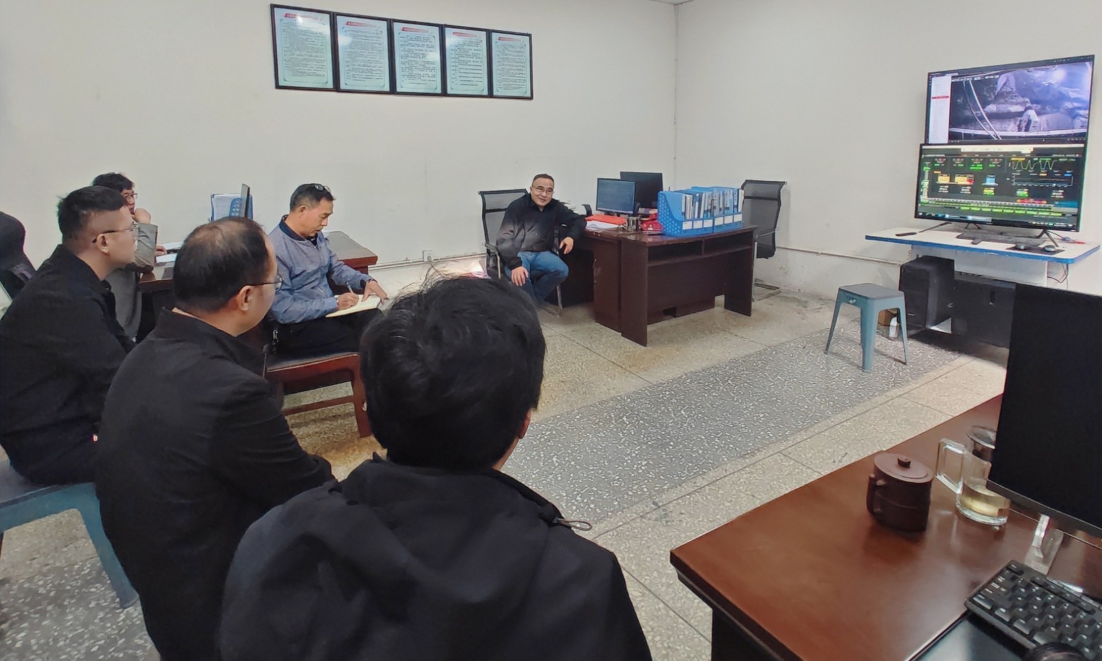 杜勤詳細了解了隊近期安全生產(chǎn)情況,特別是采煤一隊當前過斷層遇到的困難問題,查看了采煤一隊地面集中控制中心,同隊黨、政負責人就隊安全生產(chǎn)、職工收入、職工思想政治工作、黨支部“黨員突擊隊”表現(xiàn)等方面進行了深入交流。