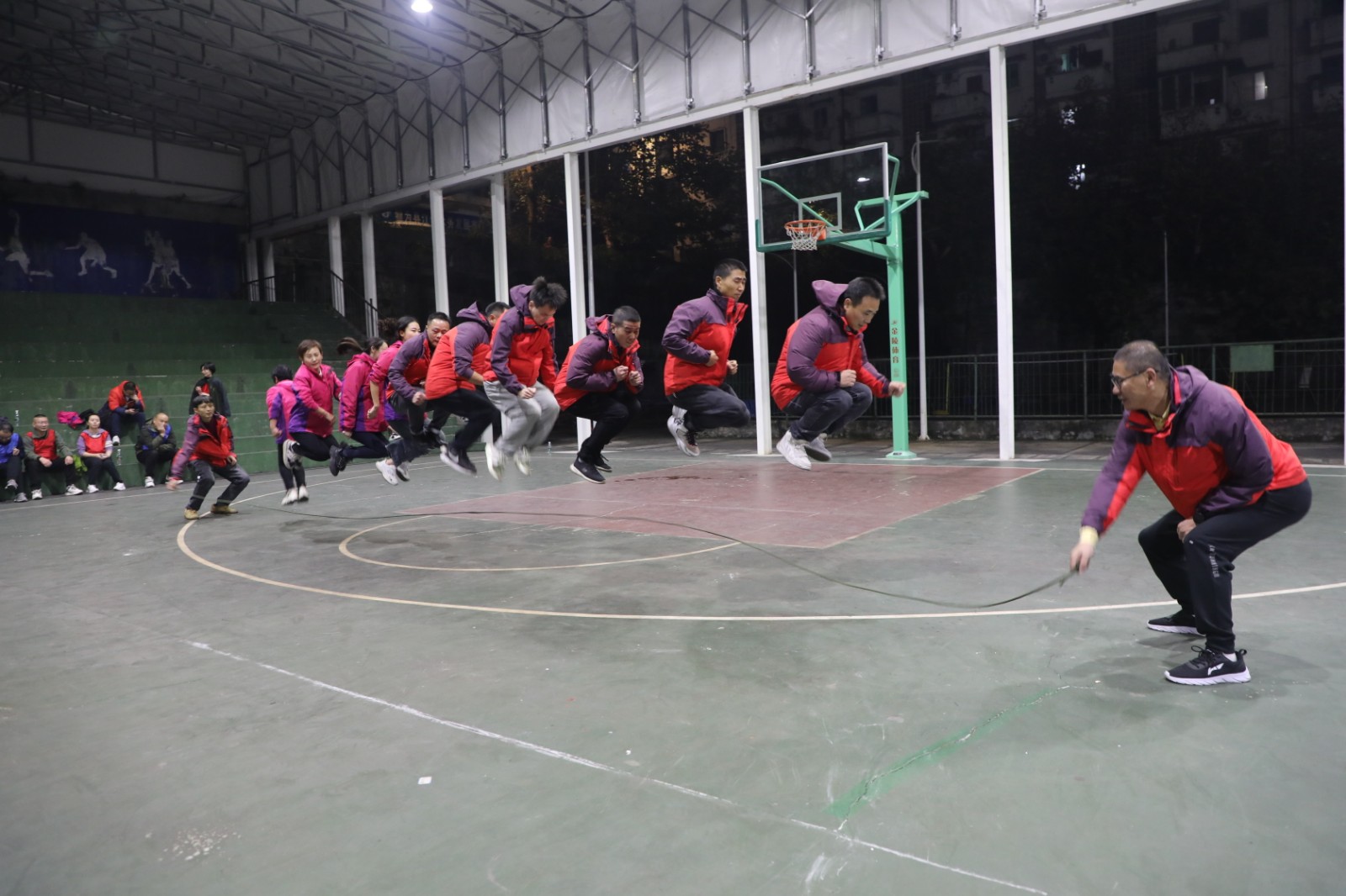 本次趣味運(yùn)動(dòng)會(huì)共設(shè)置了5個(gè)項(xiàng)目,對(duì)團(tuán)隊(duì)配合要求較高。比賽中,隊(duì)員們精神抖擻、奮力爭(zhēng)先。“牽手跑接力”傳遞的是大家朝著共同的目標(biāo),攜手并肩,奮力奔跑,不讓一個(gè)人掉隊(duì)的團(tuán)隊(duì)精神?!安秸{(diào)一致”像極了一只只大螃蟹背著重重的殼,張開兩只大鉗子在場(chǎng)上橫行,妙趣橫生;“趣味套圈”是一項(xiàng)全部由女隊(duì)員上場(chǎng)的項(xiàng)目,要求拋圈和拿小木棒的兩名隊(duì)員默契配合,看誰先套完手中的圈即為當(dāng)晚的“圈王”;“跳大繩”,最核心、最關(guān)鍵的是甩繩的兩名隊(duì)員,在整個(gè)甩繩的過程中,通過大臂、手腕靈活的轉(zhuǎn)動(dòng),始終保持繩的緊張狀態(tài)和圓滑的弧線,跳繩要求節(jié)奏一致,步調(diào)統(tǒng)一,看似簡(jiǎn)單卻需要大家不停地磨合調(diào)整,場(chǎng)上一度狀況百出,看來大家都低估了這個(gè)項(xiàng)目的難度,峨旅公司跳出了3分鐘29個(gè)的耀眼成績(jī);“趕豬跑”不僅要跑的快,還要跑的穩(wěn),還得會(huì)轉(zhuǎn)圈圈,特別考驗(yàn)隊(duì)員的手腳協(xié)調(diào)能力,躬身屈膝,小心翼翼,生怕“小豬”任性起來到處亂跑……場(chǎng)上歡聲笑語不斷,助威聲一浪高過一浪。最終,川投峨旅隊(duì)獲得第一名,機(jī)關(guān)獲得第二名,保衛(wèi)部獲得第三名。
