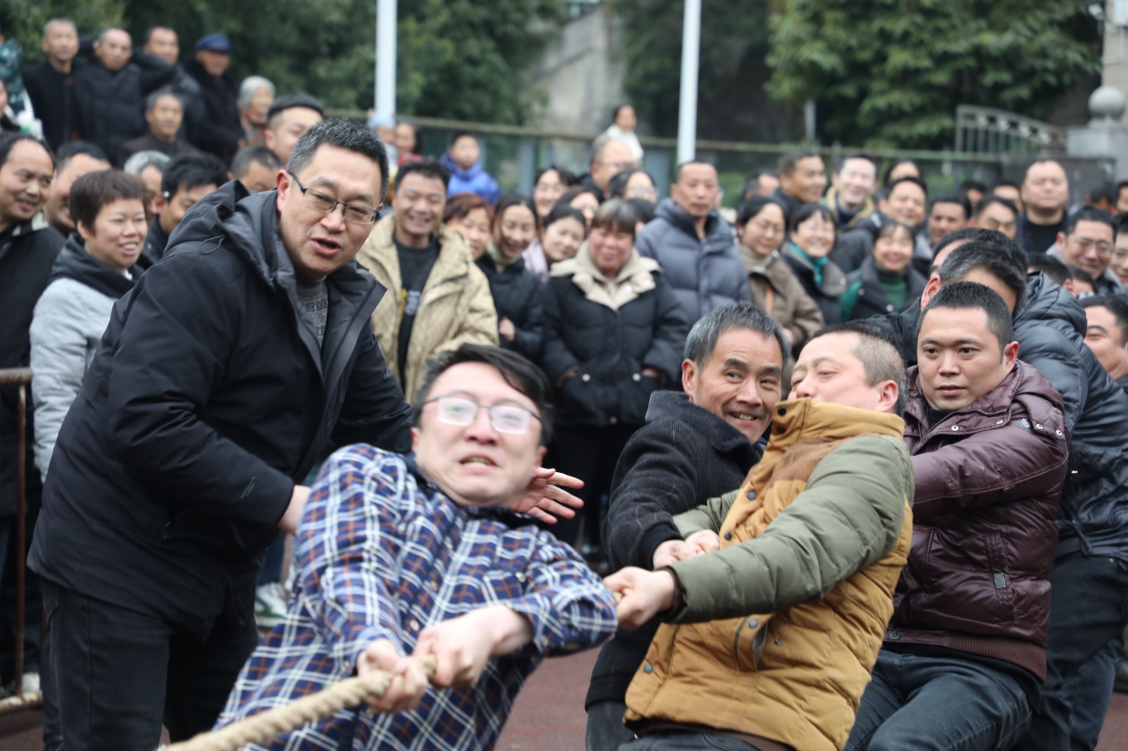 活動伊始,拔河賽在熱烈的歡呼聲中拉開序幕,18支男子代表隊和6支女子代表隊展開了緊張而激烈的角逐,展現(xiàn)出堅韌不拔的精神風(fēng)貌,觀眾們?yōu)閰①愡x手加油鼓勁,助威聲、吶喊聲此起彼伏。