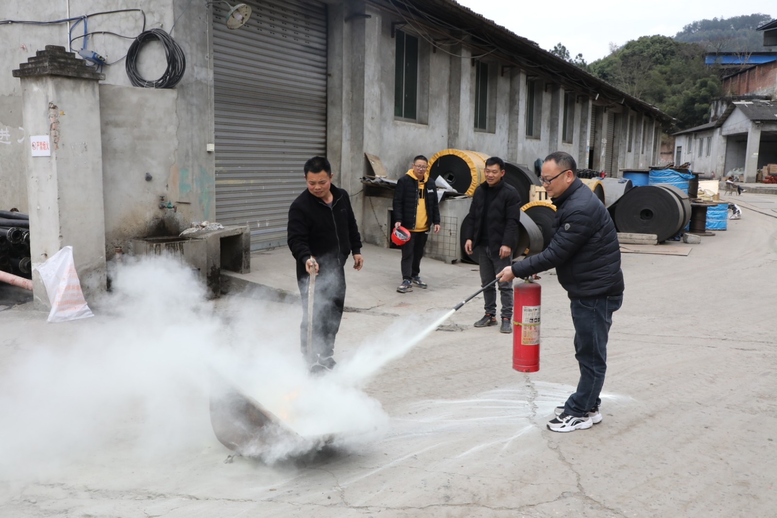 3月13日-14日,物資供銷公司結(jié)合工作特點(diǎn),有針對性地組織開展了防災(zāi)減災(zāi)綜合應(yīng)急演練。演練開始前,安全員組織集中學(xué)習(xí)了應(yīng)急處置預(yù)案。演練分為應(yīng)急逃生疏散和消防器材使用兩部分。隨著一陣急促的警報(bào)聲響起,模擬發(fā)生火災(zāi)、地質(zhì)災(zāi)害、地震時(shí),庫區(qū)工作人員緊急疏散逃生,快速、有序、安全撤離到避險(xiǎn)區(qū)域,演練旨在讓庫管員熟悉疏散路線,提高安全意識(shí)和自救自護(hù)能力。另一項(xiàng)演練內(nèi)容為消防器材的使用,鋪設(shè)水帶、連接水槍,熟悉和掌握滅火器的操作要領(lǐng)等。演練現(xiàn)場安全員從旁示范,強(qiáng)調(diào)注意事項(xiàng):“鋪設(shè)水帶前應(yīng)檢查水帶及接頭是否良好;當(dāng)油料庫、?;穾熘饡r(shí),嚴(yán)禁使用消防水進(jìn)行滅火;使用滅火器時(shí)應(yīng)該注意,人要站在上風(fēng)口方向1.5米至2米處對準(zhǔn)火源根部……”在學(xué)習(xí)了操作要領(lǐng)和注意事項(xiàng)后,大家輪番上陣爭相上手操作,進(jìn)一步掌握了消防器材的使用。