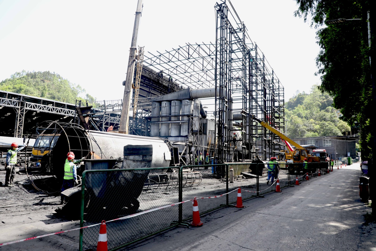 嘉陽煤礦風(fēng)選設(shè)備撤除工程由機(jī)電分公司負(fù)責(zé),在經(jīng)過前期物資準(zhǔn)備、技安措施制訂、安全學(xué)習(xí)后,相關(guān)人員于5月7日進(jìn)場開始施工。施工現(xiàn)場設(shè)置了安全警戒線、配備了專職安全員,采用大型吊車對風(fēng)選設(shè)備零部件進(jìn)行固定,然后由電氧焊工進(jìn)行切割分離,最后由吊車將零部件安全放置地面。撤除工程預(yù)計(jì)5月20日前完成。