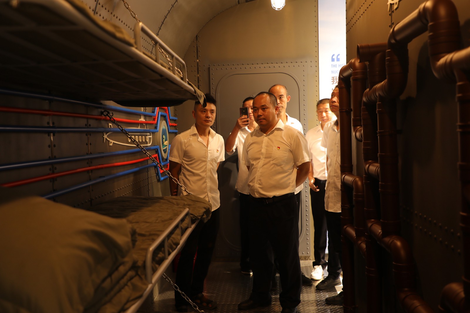 中國核動(dòng)力研究設(shè)計(jì)院909基地成立于1965年,為我國核工業(yè)發(fā)展和國防現(xiàn)代化做出了突出貢獻(xiàn),艱苦奮斗、?無私奉獻(xiàn)、?攻堅(jiān)克難的精神展現(xiàn)得淋漓盡致,被譽(yù)為中國核動(dòng)力的搖籃。?退役軍人們走進(jìn)“時(shí)代楷?!迸硎康撛菏康霓k公舊址、故居,兩院院士趙仁愷故居等重要建筑,了解到彭士祿和趙仁愷院士等人一無圖紙資料、二無專家外援,只見過照片和玩具模型。沒有老師,就自學(xué)自悟;沒有資料,就現(xiàn)學(xué)現(xiàn)譯;沒有設(shè)備,就用算盤尺子。“干驚天動(dòng)地事、做隱姓埋名人”的精神值得所有人學(xué)習(xí)。退役軍人們通過觀看視頻,見證了我國核動(dòng)力事業(yè)從無到有、由弱到強(qiáng)一步步邁向輝煌的非凡歷程。909基地神秘面紗背后的故事讓退役軍人們心潮澎湃撫今追昔,曾今他們在祖國的各條戰(zhàn)線上保家衛(wèi)國,如今他們在嘉陽的各個(gè)崗位上恪盡職守,他們有的已近花甲,有的剛過而立,為嘉陽的高質(zhì)量發(fā)展一代又一代接續(xù)奮斗,為企業(yè)的“智改數(shù)轉(zhuǎn)”不斷貢獻(xiàn)力量,永不變質(zhì)永不褪色。在909基地入口,退役軍人中的黨員們還重溫了入黨誓詞,錚錚誓言在基地上空回蕩,激勵(lì)著他們堅(jiān)守初心矢志不渝。