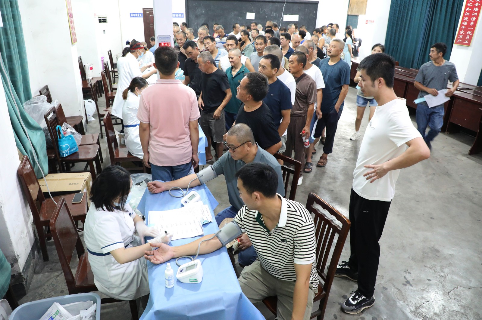 8月29日,新職工入職前身體健康檢查與老職工離職前職業(yè)病檢查在嘉陽職培校同時(shí)進(jìn)行。檢查內(nèi)容包括包括:?jiǎn)栐\、一般檢查、血檢、尿常規(guī)、耳鼻咽喉、肺功能、電測(cè)聽、DR等。體檢合格后,他們將參加崗前培訓(xùn),經(jīng)培訓(xùn)考試合格后與企業(yè)簽定試用期勞動(dòng)合同。