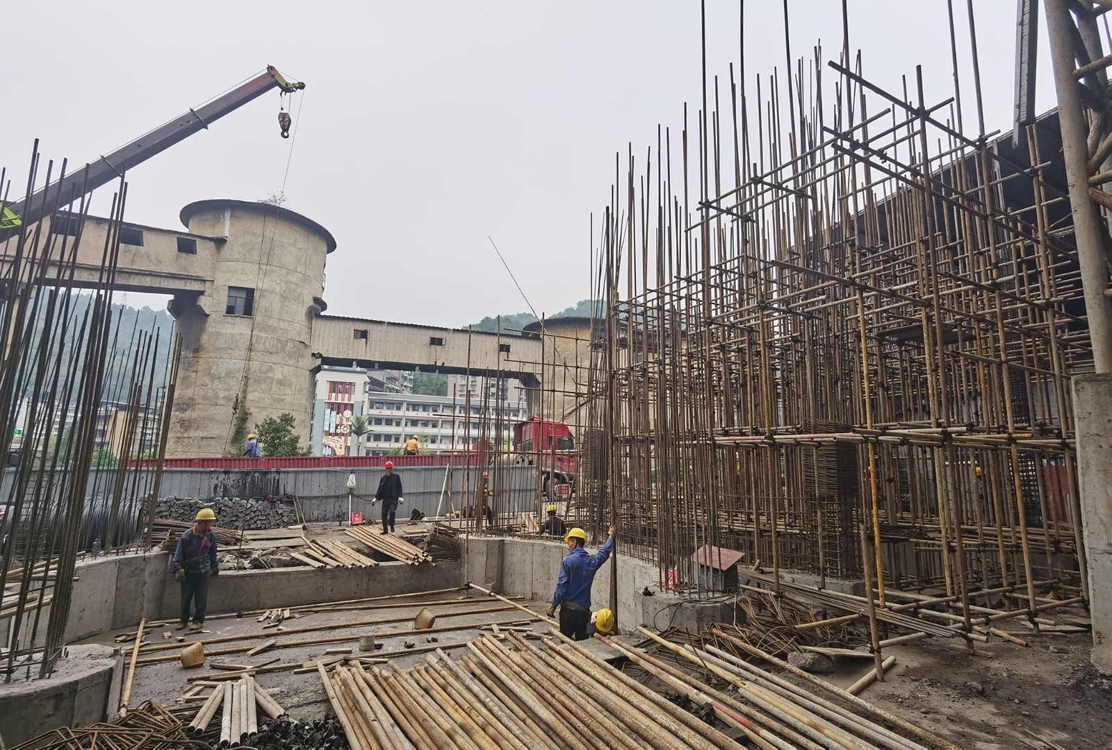 繼分級轉(zhuǎn)運(yùn)系統(tǒng)主體竣工后,配套設(shè)施工程建設(shè)委外加速推進(jìn),主要在嘉陽煤礦炭壩原入口處新建兩個(gè)儲備800噸煤炭的煤倉,工期120天,現(xiàn)已完成兩煤倉樁基施工和地梁混凝土澆灌并通過驗(yàn)收。目前,施工人員正按設(shè)計(jì)搭建腳手架,從兩個(gè)煤倉的基礎(chǔ)向上延伸鋼筋,逐漸形成圓形煤倉筒體,為下一步混凝土澆灌作準(zhǔn)備?,F(xiàn)場,公司現(xiàn)場管理單位緊盯工程進(jìn)度,作好全過程技安指導(dǎo)與督察,確保工程順利推進(jìn)。
