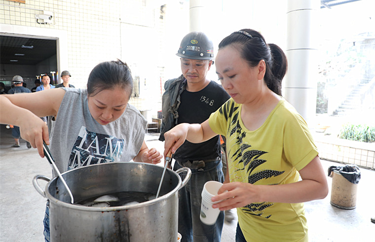 26日下午,煤礦女工委也組織開展了“送清涼”活動,女工們將制好的冰粉送到天錫井井口,送到煤礦出入井職工手中,在“送清涼”的同時不忘叮囑下井職工注意安全。據(jù)煤礦女工委的同志介紹這樣的活動她們還會在炎熱的夏天持續(xù)開展。除了定點送冰粉,還為每個車間配備了藿香正氣水、風(fēng)油精等防暑降溫藥品,采取多種措施落實防暑降溫和勞動保護工作,切實保障廣大職工的身體健康,促進公司的安全生產(chǎn)。