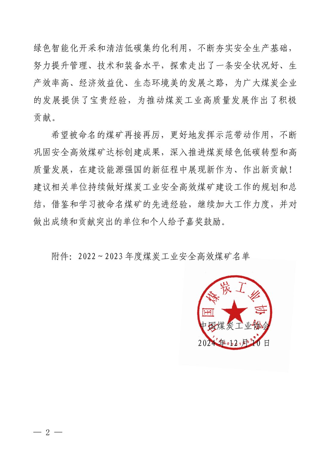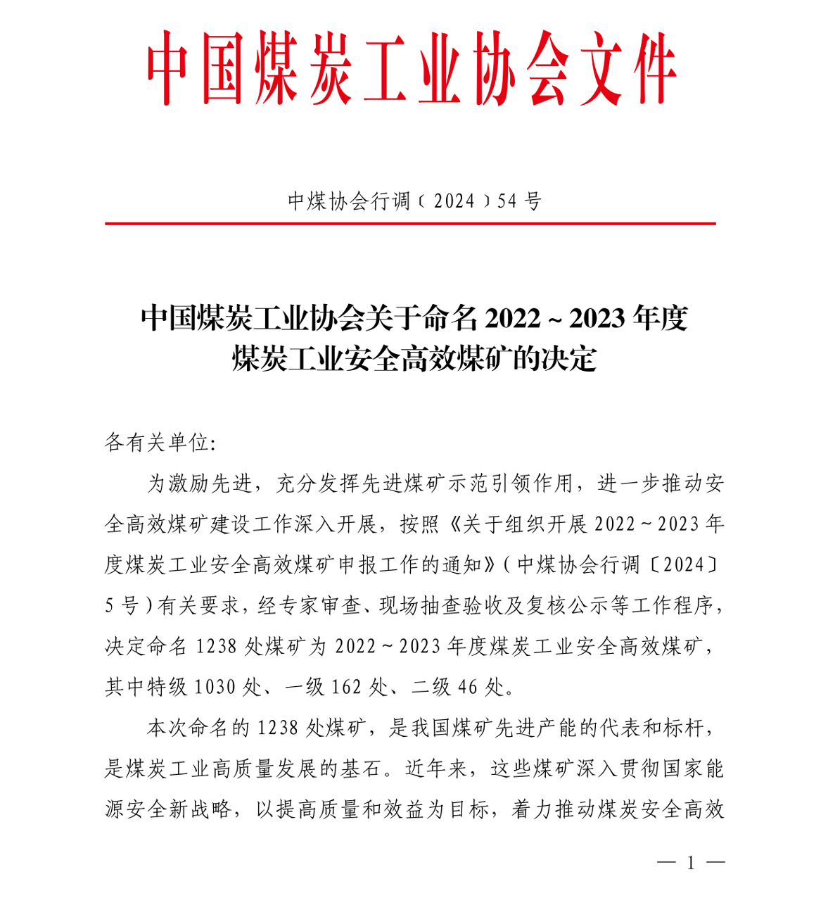 近日,中國煤炭工業(yè)協(xié)會印發(fā)關(guān)于命名2022年-2023年度煤炭工業(yè)安全高效煤礦的決定,嘉陽煤礦再次榮獲“全國煤炭工業(yè)一級安全高效礦井”稱號,這是對煤礦安全生產(chǎn)標(biāo)準(zhǔn)化和智能化改造成果的又一高度肯定。