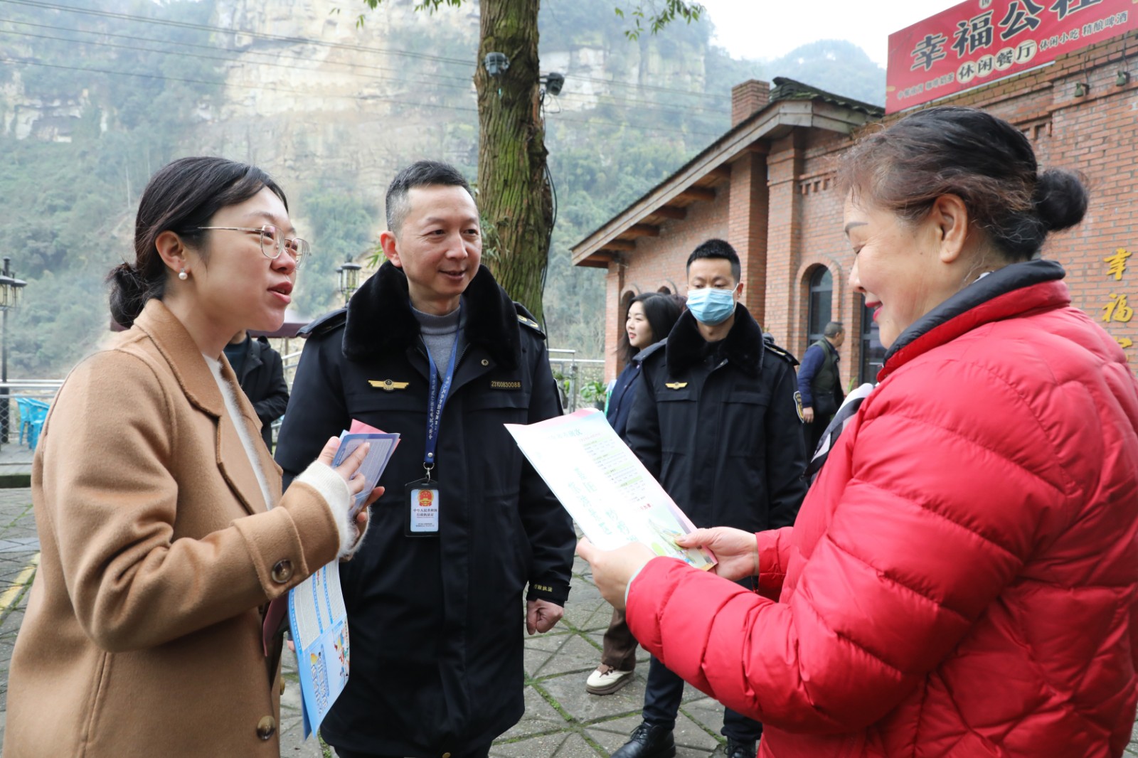 在芭蕉溝商業(yè)街,市場監(jiān)督管理局的工作人員督導(dǎo)檢查餐館食品衛(wèi)生安全,引導(dǎo)商戶文明誠信經(jīng)營,打造安全放心的消費(fèi)環(huán)境;在景區(qū)服務(wù)點(diǎn),公司法務(wù)部的同志向工作人員講解《消費(fèi)者權(quán)益保護(hù)法》相關(guān)知識,增強(qiáng)服務(wù)人員的法律意識、文明意識,做文明旅游踐行者,共同營造誠信景區(qū)環(huán)境;活動(dòng)現(xiàn)場還設(shè)置了法律咨詢服務(wù)點(diǎn),升力律所的律師向游客發(fā)放《民法典宣傳折頁》《“八五”普法宣傳冊》等普法資料,為游客們免費(fèi)提供了法律咨詢服務(wù),用心用情把法律知識送到群眾身邊。