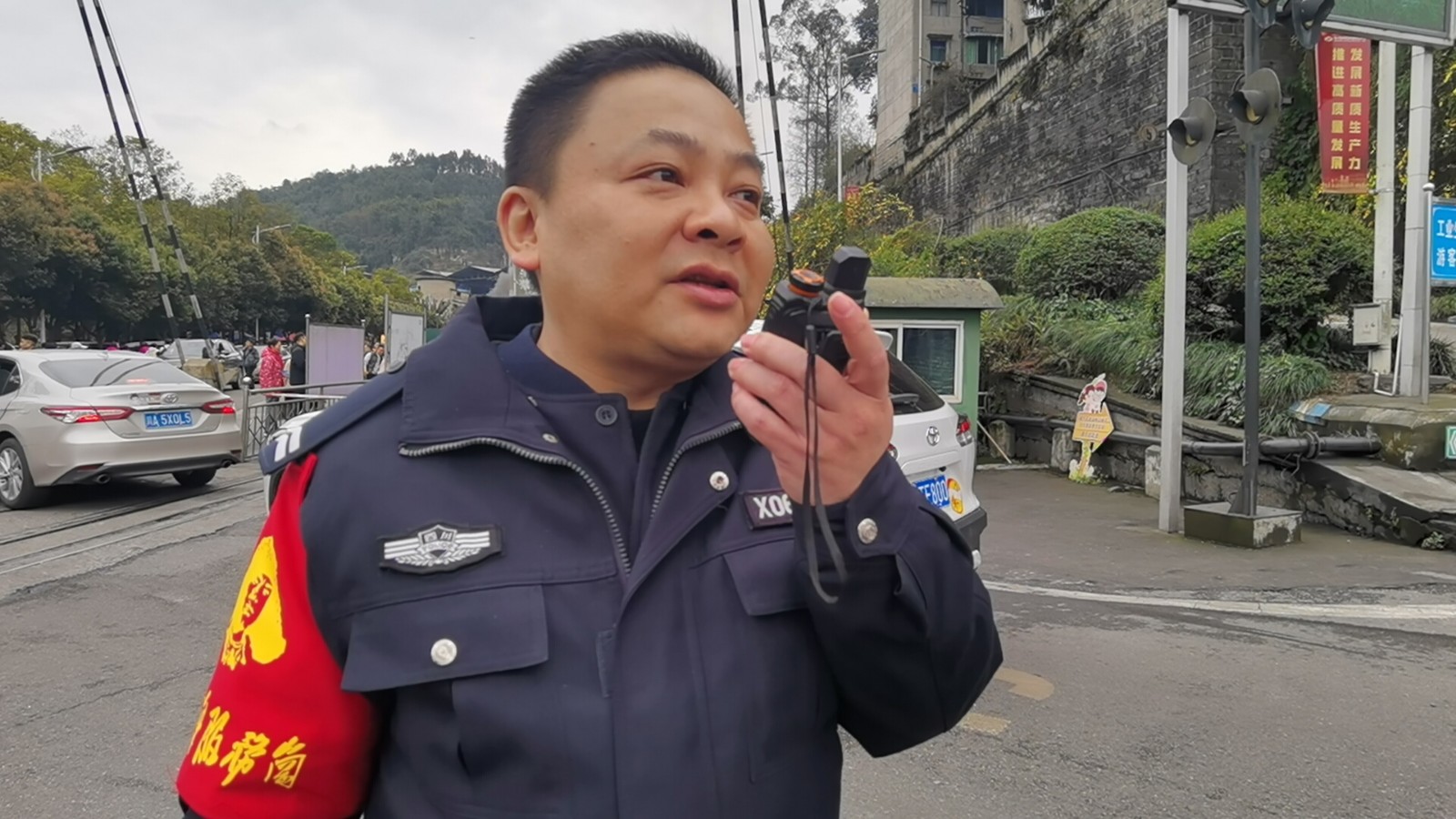 3月中旬迎來(lái)“花開(kāi)犍為·多彩嘉陽(yáng) 2025‘花季之旅’”高峰期,嘉陽(yáng)礦區(qū)熱鬧非凡,小火車躍進(jìn)橋站更是車流不斷、人頭攢動(dòng)。保衛(wèi)干事們右臂佩戴醒目的“學(xué)雷鋒服務(wù)崗”紅袖章,主動(dòng)亮明身份,不時(shí)揮手示意,精準(zhǔn)地引導(dǎo)車輛有序停放?!皫煾?,往前開(kāi),右邊第二個(gè)車位。”盡管聲音略帶沙啞,卻依舊清晰有力,面對(duì)游客們各種各樣的詢問(wèn),“雷鋒”們總能耐心解答,服務(wù)熱忱而周到。
