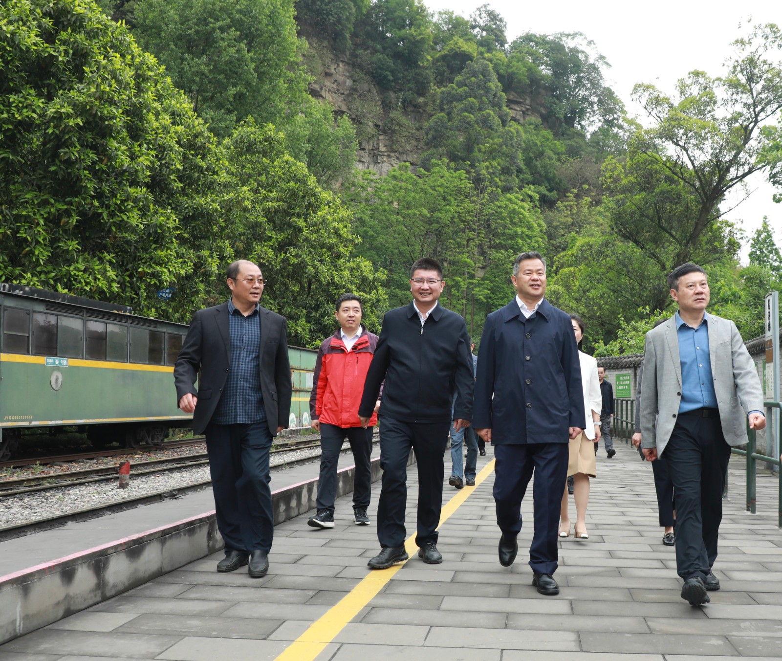 4 月 24 日,民革中央副主席、省政協(xié)副主席、民革四川省委會(huì)主委歐陽澤華率隊(duì)來到芭蕉溝,深入調(diào)研嘉陽文旅融合及全國民革黨員教育基地建設(shè)等情況。集團(tuán)公司黨委副書記、總經(jīng)理范勤英全程陪同。