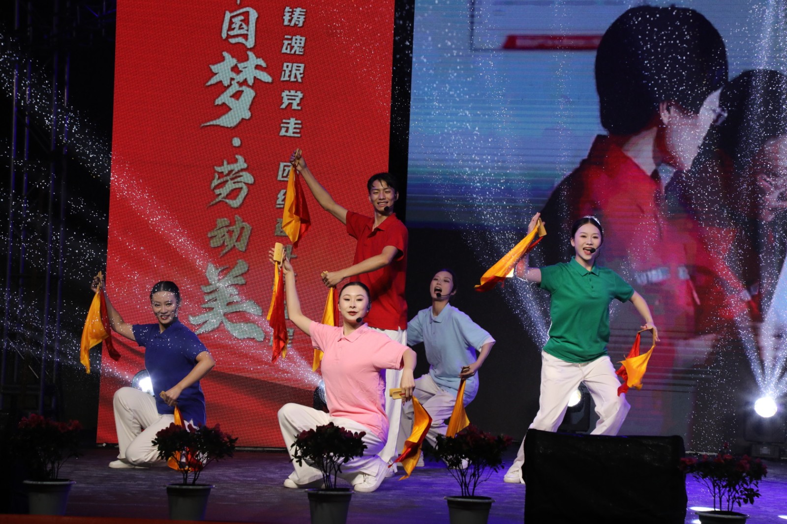 晚會在舞蹈《烏金律動·大地回響》中拉開序幕,舞者身姿矯健,動作剛勁有力,傳遞出煤礦工人的熾熱情懷,生動詮釋了“燃燒自己,照亮世界;奉獻自己,服務(wù)社會”的嘉陽煤礦燃燒文化;詩朗誦《追尋》、勞模風(fēng)采展示、歌曲《一路向前》、雜技《揚帆前行》、音樂快板《四川工人有力量》、非遺集萃《巴蜀神韻》、魔術(shù)《最炫中國風(fēng)》等形式多樣、精彩紛呈的節(jié)目輪番上演,現(xiàn)場觀眾歡呼聲、喝彩聲不斷,充分展示了新時代勞動者陽光向上、積極進取的精神風(fēng)貌,唱響了勞動最光榮的主旋律。