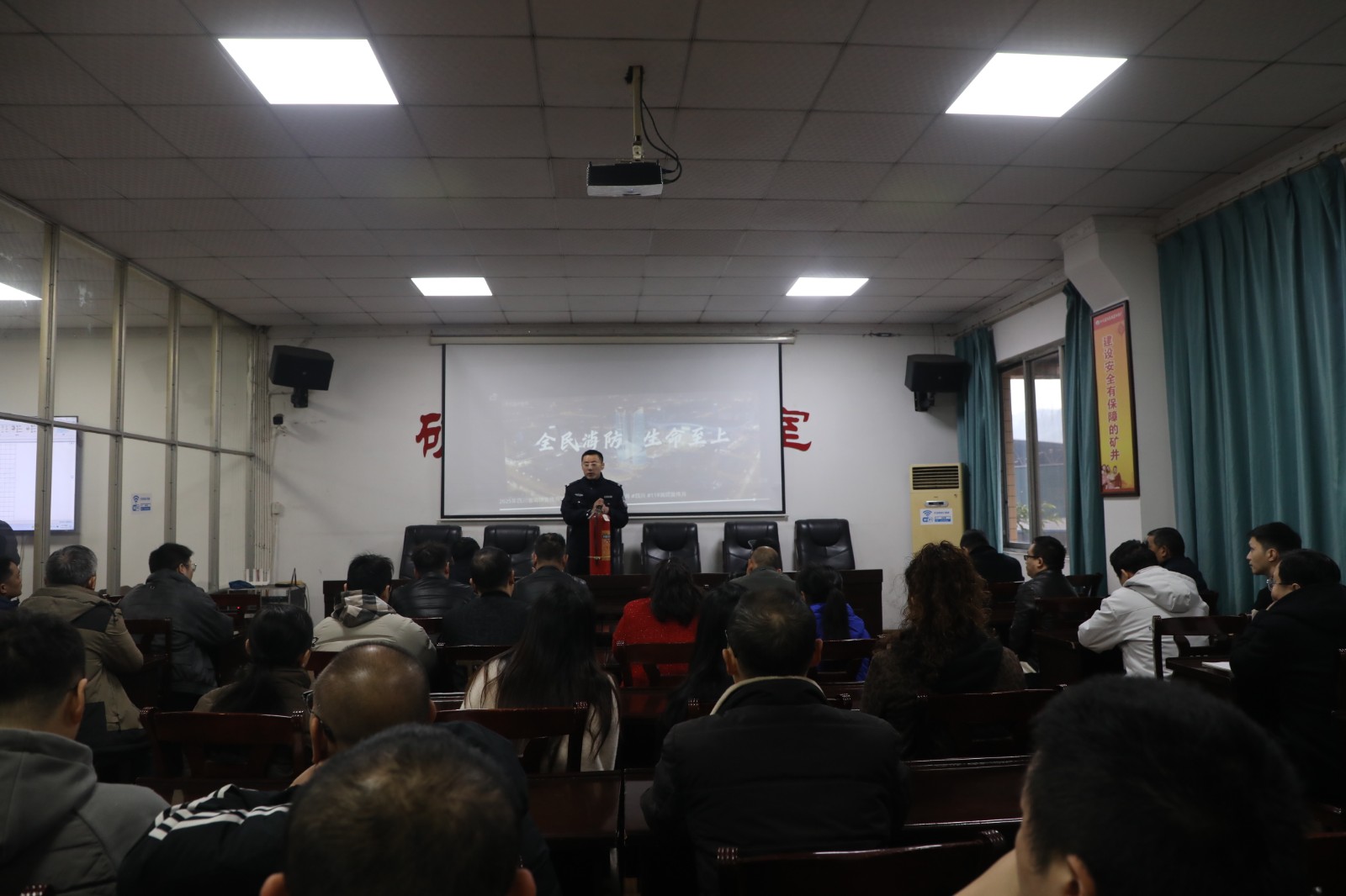 進(jìn)入冬季,火災(zāi)頻發(fā),為增強(qiáng)職工們的消防意識(shí),提升滅火器使用技能,普及日常防火知識(shí),結(jié)合四川能源發(fā)展集團(tuán)消防安全“五個(gè)一”活動(dòng)的要求,保衛(wèi)部組織開展消防安全宣傳教育培訓(xùn)。利用嘉陽煤礦隊(duì)站周四安全會(huì)的契機(jī),保干們分成四組深入11個(gè)隊(duì)站開展培訓(xùn)。培訓(xùn)以“全民消防 生命至上 安全用火用電”為主題,組織職工們觀看防火宣傳視頻,直觀感受日常防火的重要性;系統(tǒng)講解防火知識(shí),做到應(yīng)知應(yīng)會(huì),以身邊發(fā)生的火災(zāi)為例,提醒大家要做到家庭防火“三關(guān)三清”—清走道、清陽臺(tái)、清廚房、關(guān)火源、關(guān)電源、關(guān)燃?xì)?,從源頭上杜絕火災(zāi)發(fā)生;現(xiàn)場(chǎng)演示滅火器的使用方法,強(qiáng)調(diào)注意事項(xiàng),講授初期火災(zāi)的救火與逃生方法,示范火災(zāi)發(fā)生時(shí)逃生技巧,職工們按照講解要領(lǐng),進(jìn)行了模擬火災(zāi)發(fā)生時(shí)疏散逃生演練。