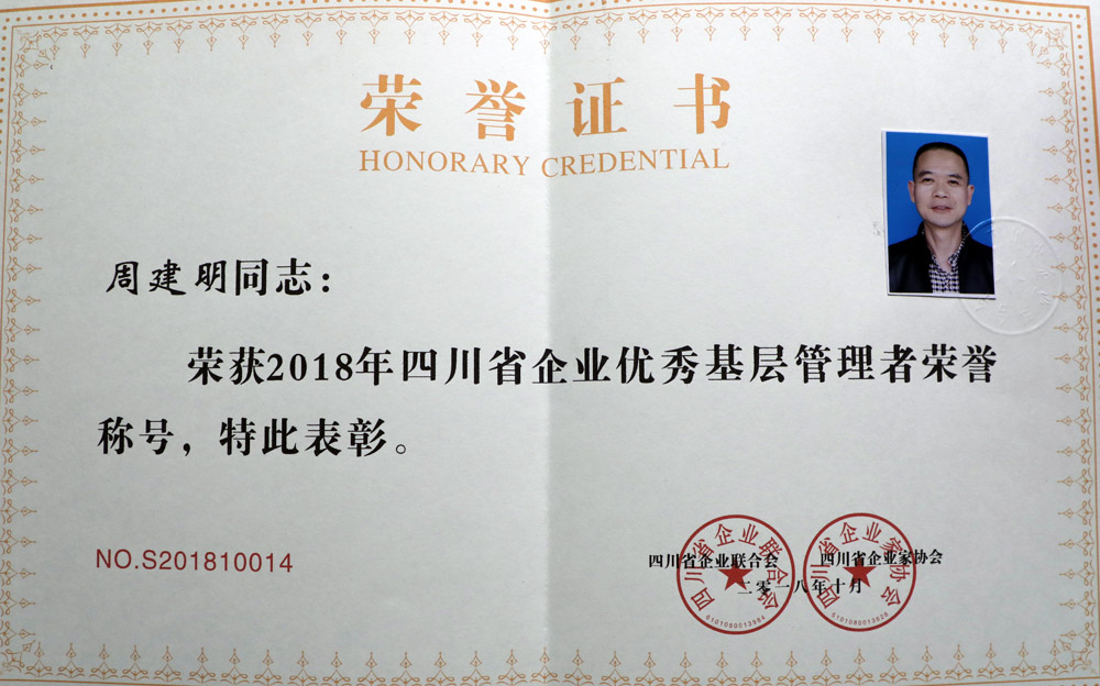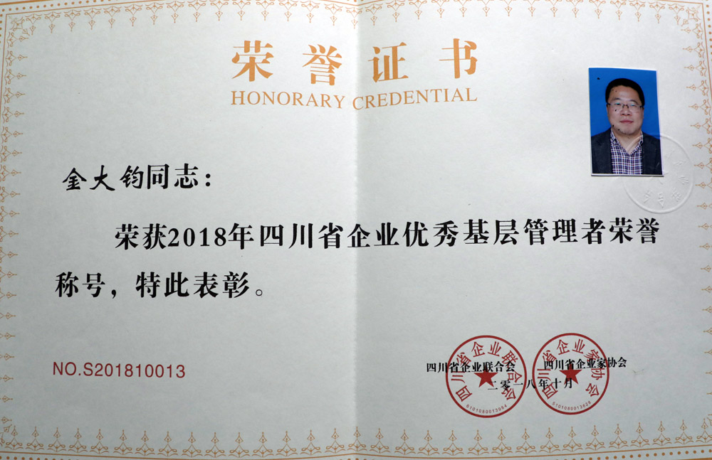 為推動企業(yè)基層管理水平不斷攀升,提升企業(yè)可持續(xù)發(fā)展力,打造高端人才匯聚高地和人才價值實現(xiàn)高地的要求,四川省企業(yè)家聯(lián)合會、省企業(yè)家協(xié)會聯(lián)合開展了此次評選活動,經(jīng)過推薦、會審等相關(guān)程序,最終完成了評選。公司副總會計師兼經(jīng)營財務(wù)部部長金大鈞,公司紀(jì)委副書記、審計部部長周建明恪盡職守,勇于奉獻(xiàn),為企業(yè)轉(zhuǎn)型升級發(fā)展作出了貢獻(xiàn),在此次評選活動中被授予“優(yōu)秀基層管理者”稱號。