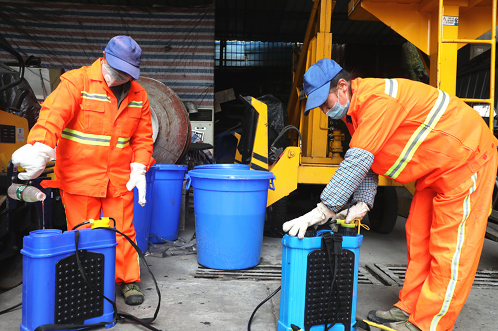 按照預(yù)定計(jì)劃,環(huán)衛(wèi)班消毒范圍包括新老兩個(gè)礦區(qū)和一個(gè)石溪片區(qū),礦區(qū)中一個(gè)觀音溪花園面積就達(dá)5000平方米,細(xì)算下來消毒區(qū)域達(dá)數(shù)萬平方米!“出門戴口罩,別去湊熱鬧……”耳旁不時(shí)傳來防疫宣傳知識(shí)和舉措,原來在綠化班常常形影不離的鄧容和鄧瓊兩姐妹因分工區(qū)域不同,第一天抗“疫”卻要分開了,而且必須到處串,所到之處必須消毒無遺漏,她們深知防疫工作最終要落實(shí)到基層,落實(shí)到每個(gè)人的行動(dòng),自己的崗位正是基礎(chǔ)中的重中之重!