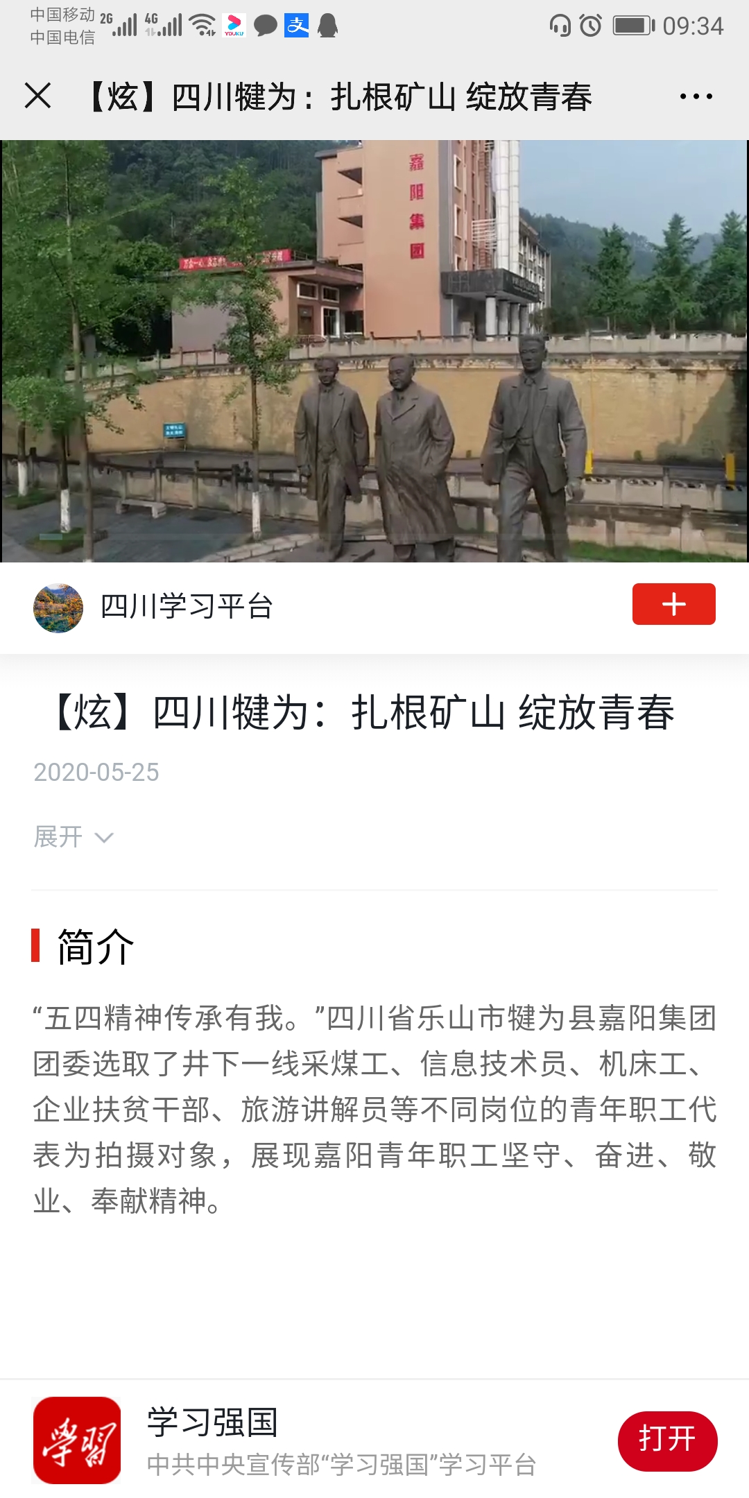 “看,咱嘉陽上‘學(xué)習(xí)強(qiáng)國’平臺(tái)了!”由嘉陽集團(tuán)團(tuán)委組織拍攝的短視頻“燃燒的青春”亮相‘學(xué)習(xí)強(qiáng)國’四川平臺(tái),短視頻迅速在朋友圈刷屏成為熱議話題。