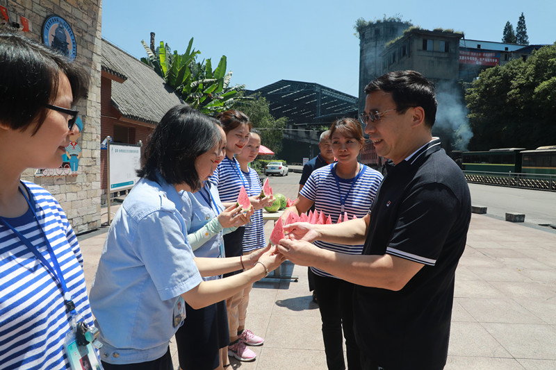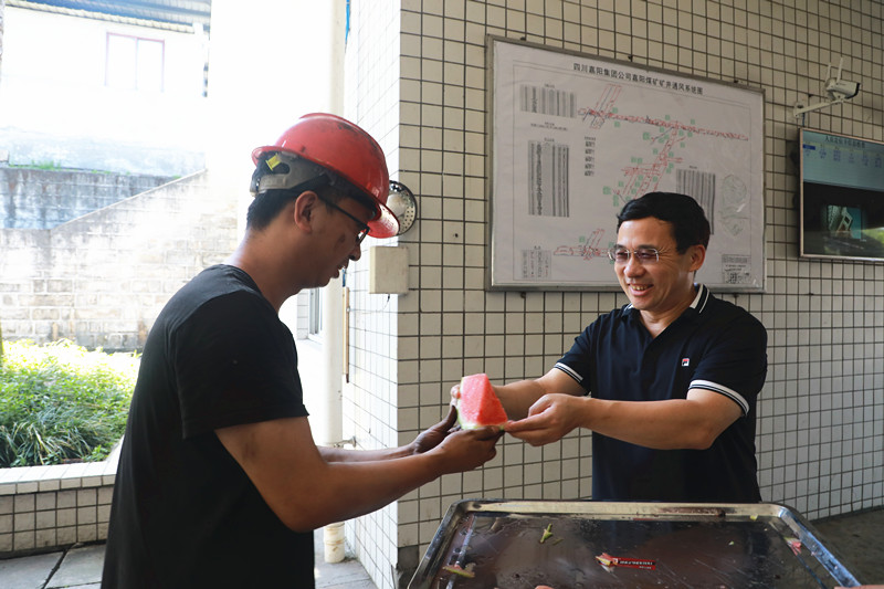 盛夏炎炎,驕陽似火。懷林副總又頂著烈日奔赴川投峨旅和嘉陽煤礦生產(chǎn)一線,看望慰問堅守在高溫崗位上的職工同志們,為火車司機、講解員和煤礦一線職工送上甘甜的西瓜和清涼的礦泉水。所到之處,懷林副總為職工們送上西瓜,并親切叮囑他們“天氣炎熱工作時更要注意自身安全!”他要求嘉陽和峨旅要切實將防暑降溫工作落到實處,全方位保障高溫崗位職工的身體健康和安全。