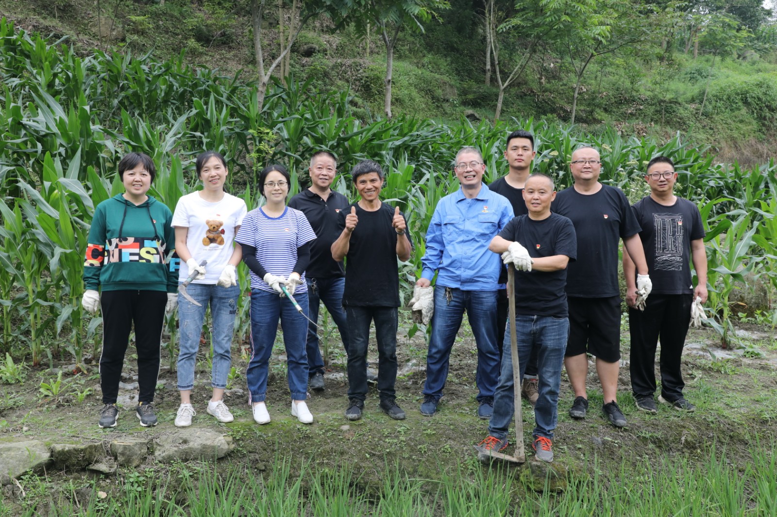 5月25日下午,物資供銷公司黨支部一行9人來到魏富才家。大家擼起袖子,拿上鐮刀、鋤頭,背上背簍立馬扎進地里,熱火朝天的干起來。汗水浸濕了衣服,握鋤頭的手生疼,蚊子叮得渾身是包,可卻沒有一個人喊累、叫苦,所有人鉚足干勁,一個下午地里的雜草全部清除干凈。黨員虞陽抹著臉上的汗水說:“半天的辛苦,換來了干凈的農田和魏富才的笑臉,能夠為職工排憂解難,感覺值得?!?/span>