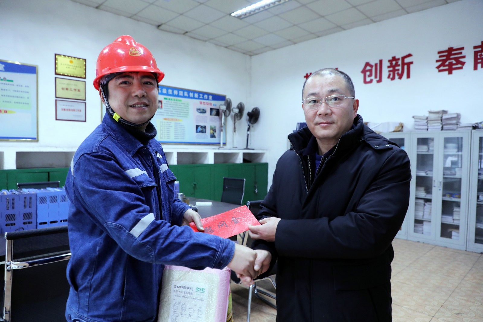 1月26日上午,黨委書記、董事長(zhǎng)杜勤帶著滿滿的關(guān)懷走進(jìn)了嘉陽煤礦職工徐德富的家中。徐德富是四川省勞模,省人大代表,現(xiàn)任掘進(jìn)一隊(duì)黨支部書記。在徐德富的家中,黨委書記杜勤仔細(xì)了解他的工作、學(xué)習(xí)和家庭生活。在得知他家中一切安好后,親切的對(duì)他說,作為黨支部書記,我們要抓好支部書記的主責(zé)主業(yè),做好職工政治思想教育,抓好操作技能培訓(xùn),提升職工技能水平,提高職工安全意識(shí),緊緊圍繞企業(yè)安全生產(chǎn)開展工作;要強(qiáng)化政治引領(lǐng)和責(zé)任擔(dān)當(dāng),加強(qiáng)黨員政治學(xué)習(xí),發(fā)揮好支部戰(zhàn)斗堡壘作用和黨員的模范帶頭作用,為企業(yè)各項(xiàng)目標(biāo)任務(wù)的完成貢獻(xiàn)智慧力量。在新春佳節(jié)來臨之際,謹(jǐn)代表公司黨委、行政和工會(huì)來看望你們,祝你們?nèi)谊H家歡樂、幸福安康。