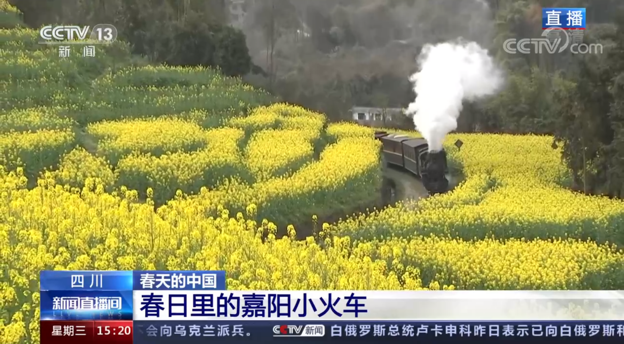 3月2日下午3時(shí),中央電視臺(tái)新聞?lì)l道新聞直播間“春天的中國(guó)”特別直播節(jié)目正式播出。隨著金黃色的油菜花在現(xiàn)場(chǎng)連線鏡頭中的驚艷亮相,全中國(guó)的目光再一次聚焦“春日里的嘉陽(yáng)小火車”。