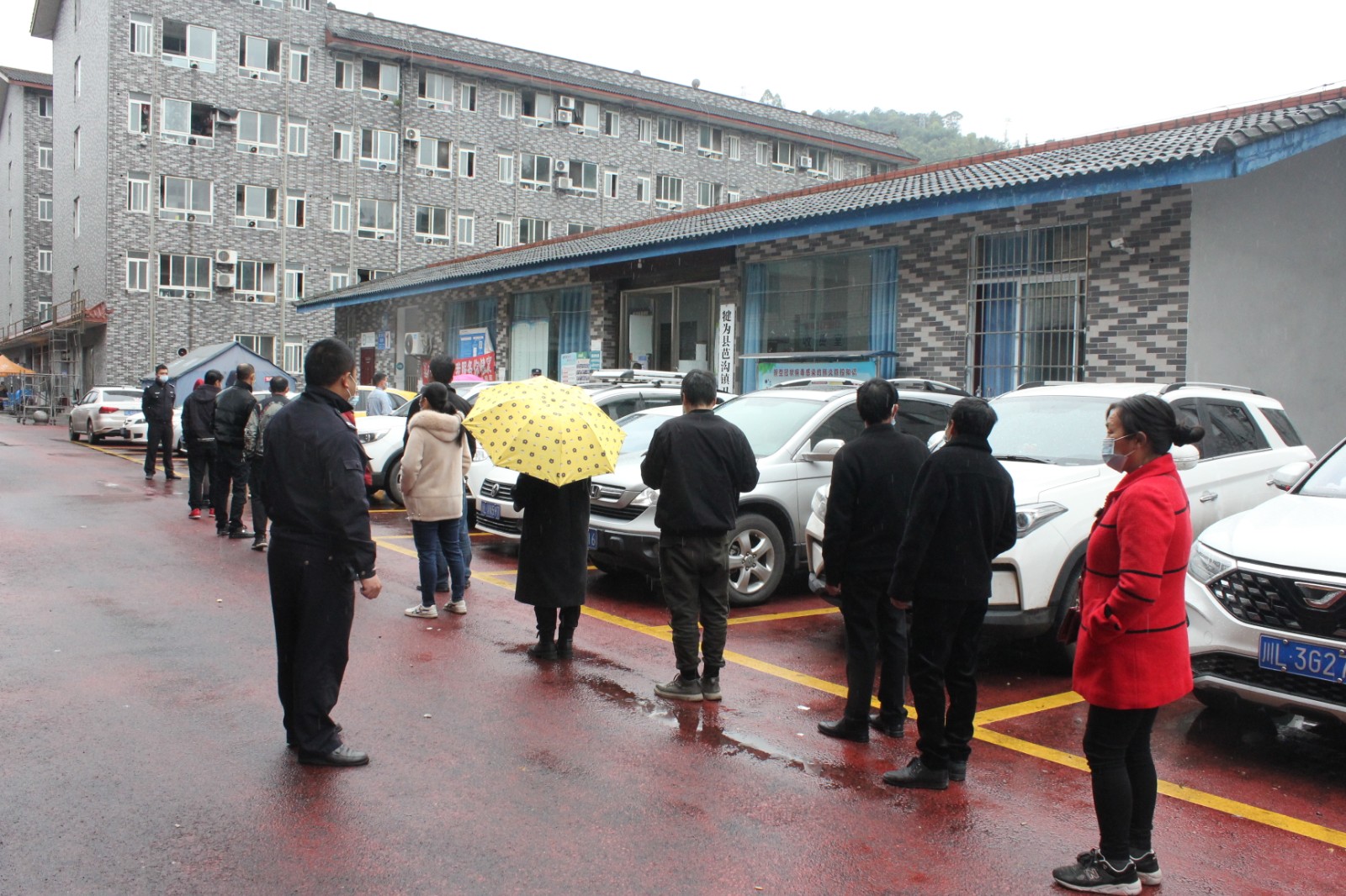 “核酸檢測試劑充足,大家都能做,請保持安全距離,排好隊依次進入衛(wèi)生院接受檢測”,在嘉陽集團保衛(wèi)部樓下,等候檢測的隊伍從芭溝鎮(zhèn)衛(wèi)生院門口一直排到隊站辦公室,保衛(wèi)部副部長蔡興明,干警王博一邊維持秩序,一邊對職工群眾進行防疫宣傳“上下午都會做,大家不要著急”。