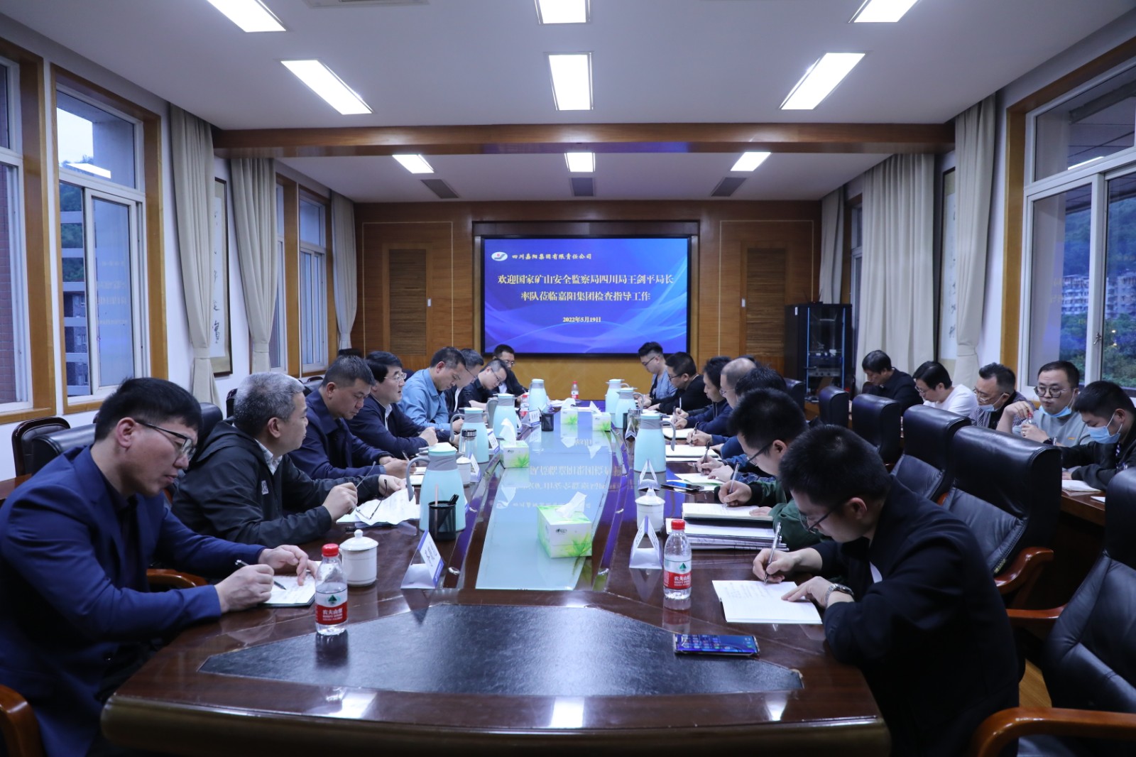 5月19日,國家礦山安全監(jiān)察局四川局王劍平局長率隊(duì)到公司檢查,幫助指導(dǎo)公司安全工作。