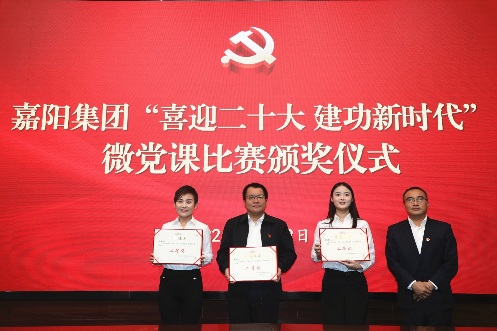 會議還對公司“喜迎二十大 建功新時代”攝影比賽、主題征文比賽、微黨課比賽獲獎者進行了頒獎。