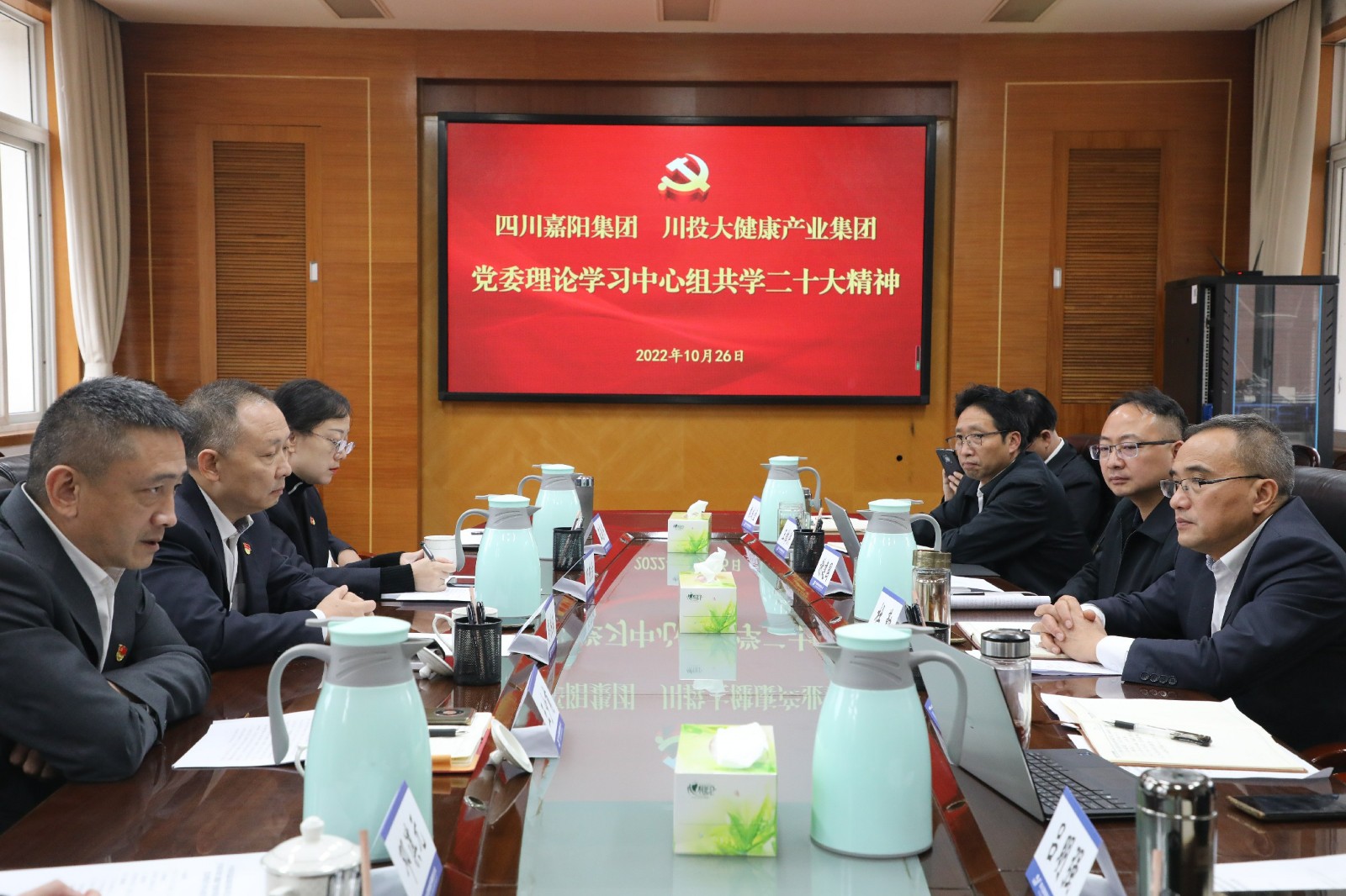 10月26日,為認真落實黨建結(jié)對聯(lián)建工作,嘉陽集團黨委與川投大健康產(chǎn)業(yè)集團黨委召開中心組專題學習會,共同學習黨的二十大報告,深入理解二十大精神,交流學習體會。