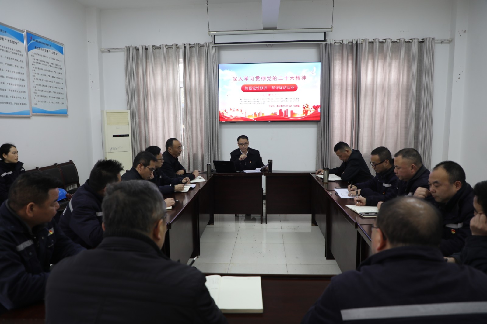為深入學習貫徹黨的二十大精神,切實把黨員、干部、職工思想統(tǒng)一到黨的二十大精神上來,把力量凝聚在黨的二十大確定的各項目標任務(wù)上來,以新時代高質(zhì)量紀檢監(jiān)察為新征程上企業(yè)高質(zhì)量發(fā)展提供堅強保障。按照嘉陽集團公司黨委工作安排部署,12月8日,嘉陽集團公司紀委書記呂明強赴福溪粉煤灰公司進行黨的二十大精神、省委十二屆二次全會精神暨廉潔教育黨課宣講。