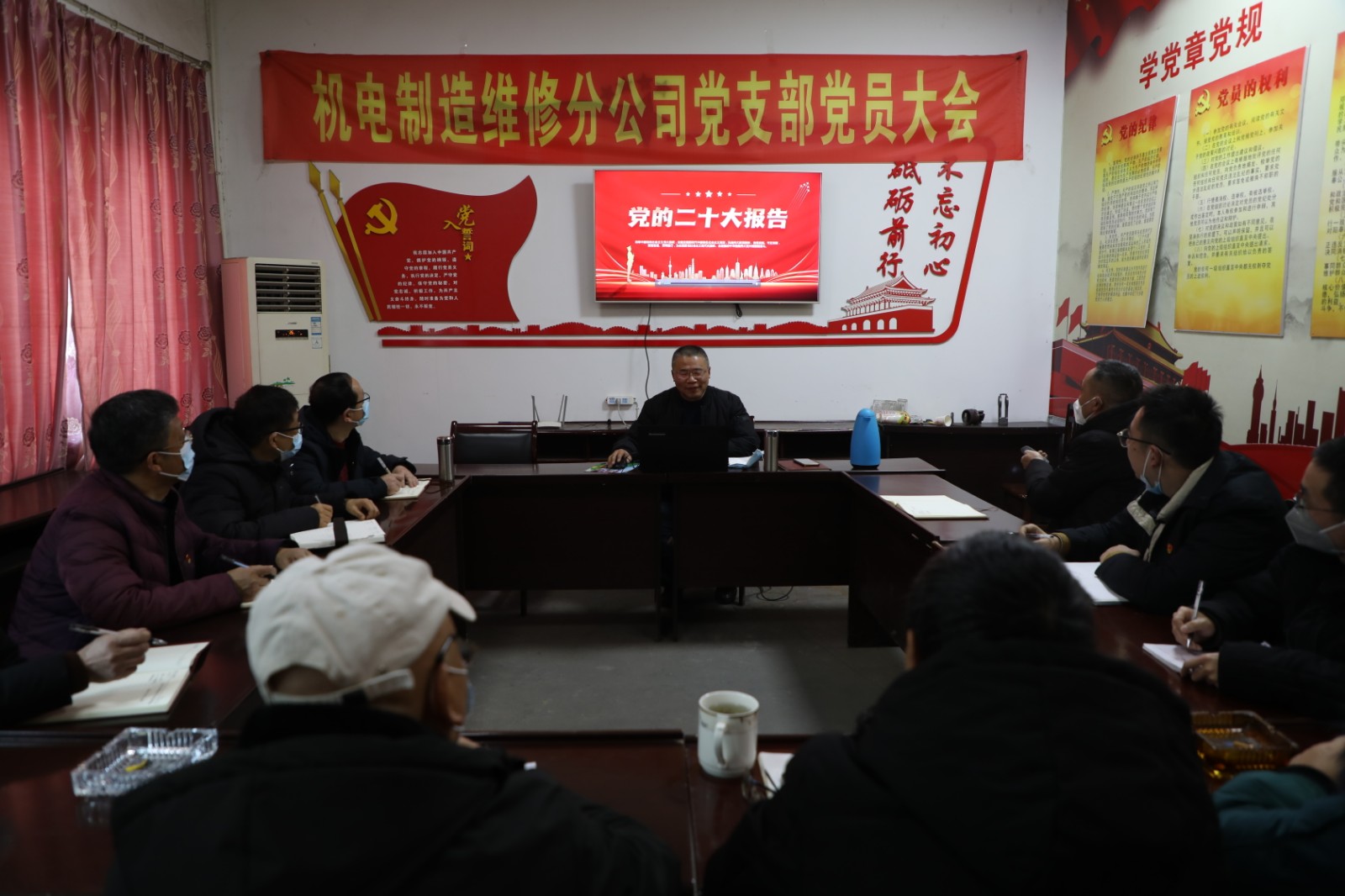 為深入學習貫徹黨的二十大精神和省委第十二屆二次全會精神,根據集團黨委安排,12月29日下午,副總經理金大鈞赴機電制造維修分公司宣講黨的二十大精神,并提出工作要求。