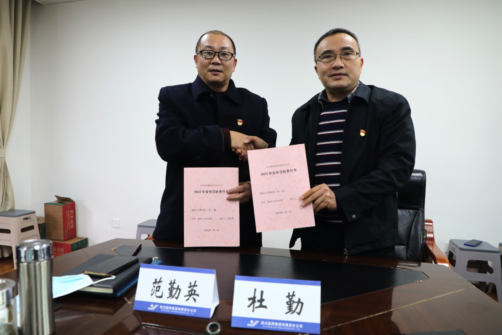 會(huì)上,黨委書記、董事長(zhǎng)杜勤與黨委副書記、總經(jīng)理范勤英簽訂了《嘉陽(yáng)集團(tuán)公司2023年度安全環(huán)保目標(biāo)責(zé)任書》,黨委副書記、總經(jīng)理范勤英與副總經(jīng)理王維洪、各二級(jí)單位行政負(fù)責(zé)人分別簽訂了《2023年度安全環(huán)保目標(biāo)責(zé)任書》。