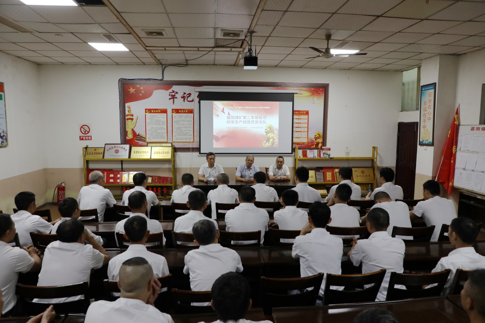 范勤英指出:學(xué)思想、強(qiáng)黨性要落腳到我們的實(shí)際工作中,落腳到推進(jìn)企業(yè)高質(zhì)量發(fā)展上,對(duì)于采二隊(duì)的全體黨員、干部、職工來(lái)講就是要落腳到推動(dòng)第二條智能化綜采生產(chǎn)的各項(xiàng)工作上來(lái)。采二隊(duì)是一支團(tuán)結(jié)協(xié)作、戰(zhàn)斗力強(qiáng)、善打硬仗、能打勝仗的隊(duì)伍,過(guò)去,你們?cè)诩彪y險(xiǎn)重任務(wù)面前勇挑重?fù)?dān),在科技攻關(guān)和技術(shù)革新中開(kāi)拓創(chuàng)新,充分發(fā)揮了黨員先鋒模范作用,彰顯了支部戰(zhàn)斗堡壘作用,今天,在學(xué)習(xí)習(xí)近平新時(shí)代中國(guó)特色社會(huì)主義思想主題教育中,在企業(yè)智能化全面推進(jìn)的進(jìn)程中,要更加求真務(wù)實(shí),勤奮工作。一是要充分認(rèn)識(shí)主題教育的深刻內(nèi)涵,通過(guò)學(xué)習(xí)習(xí)近平新時(shí)代中國(guó)特色社會(huì)主義思想轉(zhuǎn)化為堅(jiān)定理想、錘煉黨性、指導(dǎo)實(shí)踐、推動(dòng)工作的強(qiáng)大力量。二是要強(qiáng)化責(zé)任擔(dān)當(dāng),通過(guò)深入學(xué)習(xí)新知識(shí)、新技術(shù)、新裝備,不斷提高專(zhuān)業(yè)技術(shù)水平和現(xiàn)代化企業(yè)管理能力。三是要開(kāi)拓創(chuàng)新,要把現(xiàn)代化裝備運(yùn)用與工作實(shí)際結(jié)合起來(lái),積極開(kāi)展課題研究、技術(shù)革新、小改小革,使現(xiàn)代化技術(shù)裝備充分發(fā)揮出強(qiáng)大功效。四是要培養(yǎng)一支適應(yīng)現(xiàn)代化企業(yè)發(fā)展的高素質(zhì)的職工隊(duì)伍。當(dāng)前企業(yè)正堅(jiān)定不移走智能化開(kāi)采的道路,智能化、少人化、無(wú)人化是趨勢(shì)也是必經(jīng)之路,要不斷加強(qiáng)職工安全知識(shí)和操作技能培訓(xùn),激發(fā)職工學(xué)技術(shù)專(zhuān)業(yè)務(wù)的熱情,不斷推動(dòng)企業(yè)智能化開(kāi)采工作。