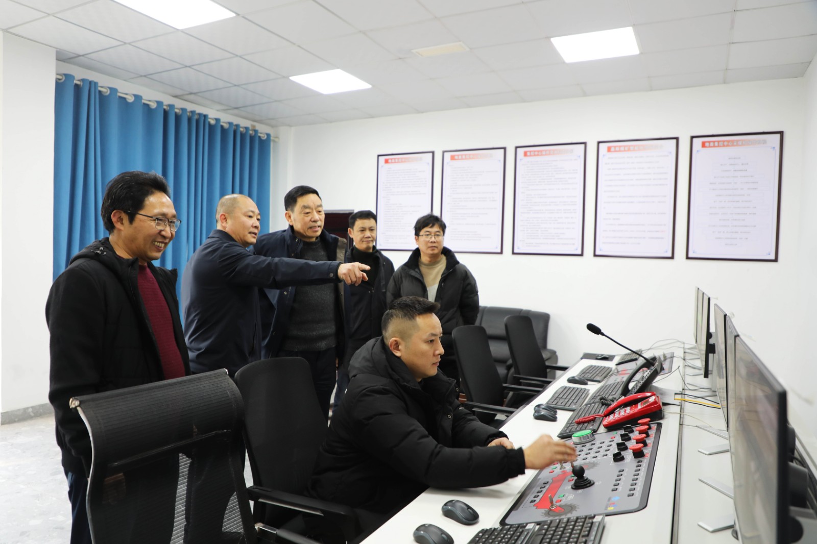 在嘉陽煤礦采一隊地面控制中心,鄧凱通過線上遠程作業(yè),實時察看井下生產(chǎn)情況,詳細詢問了解節(jié)日期間工作安排,強調(diào)一定要高度重視安全生產(chǎn)和穩(wěn)定工作,扎實開展困難幫扶送溫暖活動。同時,要充分利用春節(jié)放假時間做好設(shè)備維護檢修,確保節(jié)后開班安全順利。他講到:“春節(jié)即將來臨,我代表集團來看望大家,預(yù)祝大家春節(jié)愉快,心想事成,萬事如意,祝嘉陽在新的一年里日子過得紅紅火火。”