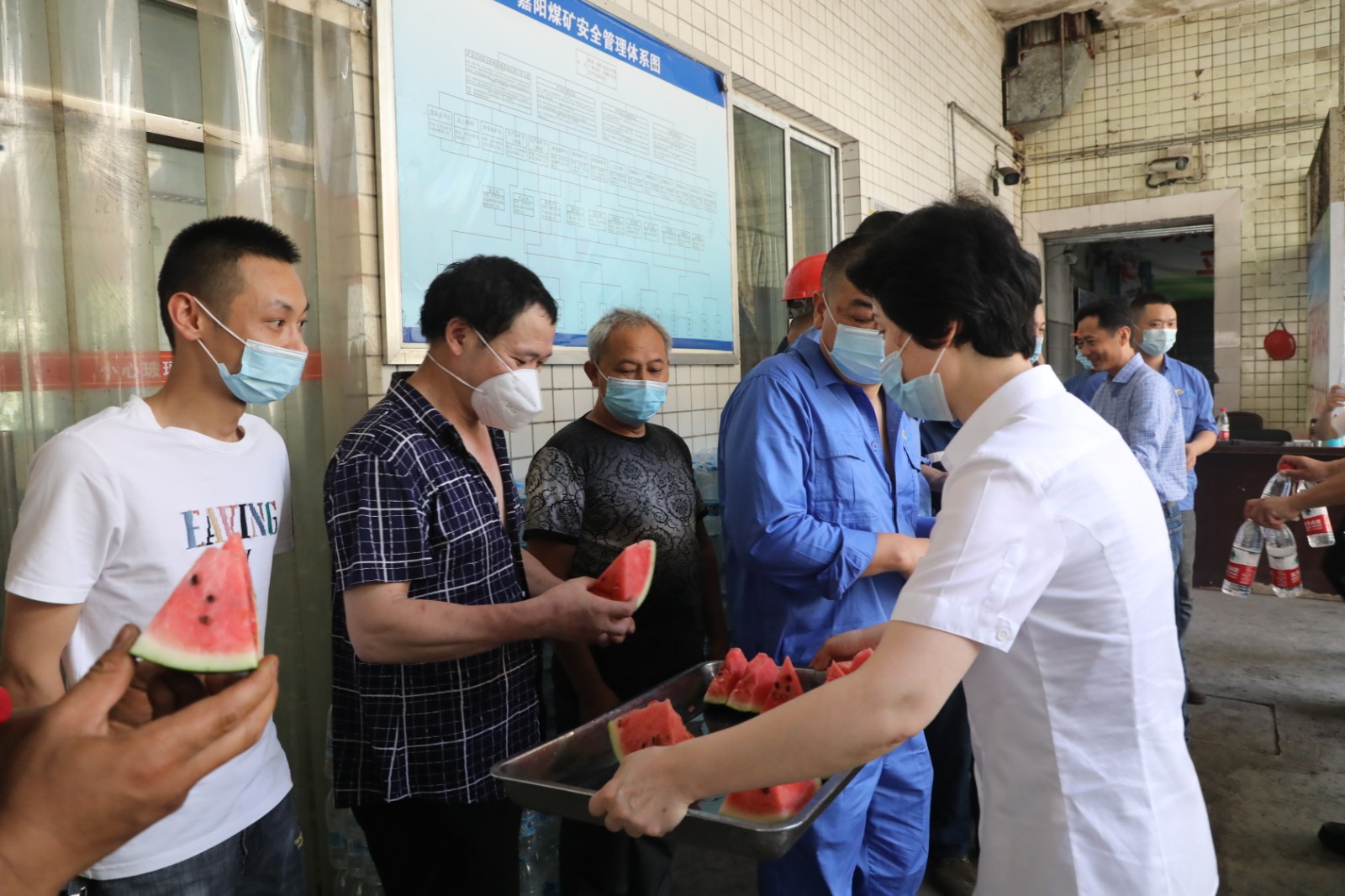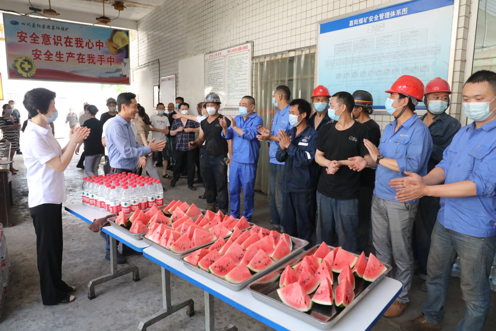 時值盛夏,酷熱難耐。張昊副總、白翠紅副主席頂著烈日前往嘉陽煤礦生產(chǎn)一線,在天錫井井口和炭壩,張昊副總、白翠紅副主席看望慰問了堅守在高溫崗位的職工,為他們送上清涼的西瓜和礦泉水。每到一處,張昊副總、白翠紅副主席招呼工人師傅們歇一歇,吃口西瓜喝口水,向他們的辛苦付出表示感謝,并關(guān)切地叮囑他們:“天氣炎熱更要注重自身防護,善于調(diào)節(jié)作息時間,充分保障自身安全?!比鼘⒅?,他們要求嘉陽集團要把防暑降溫工作抓實抓細(xì),切實保障職工的身體健康和生命安全。